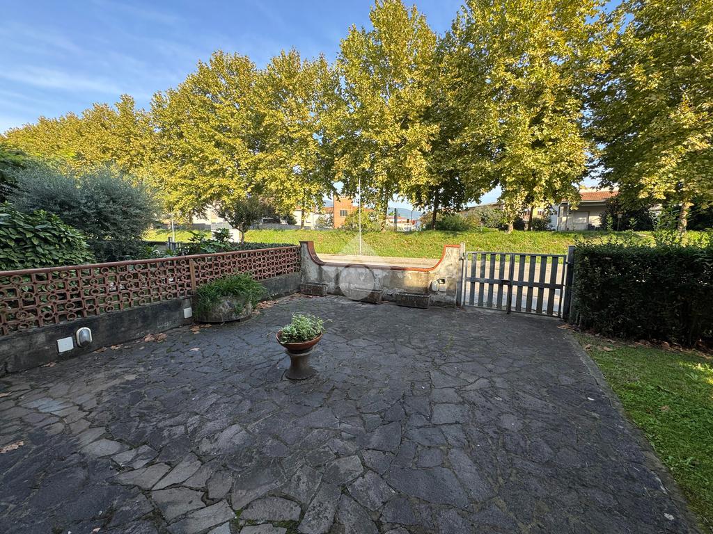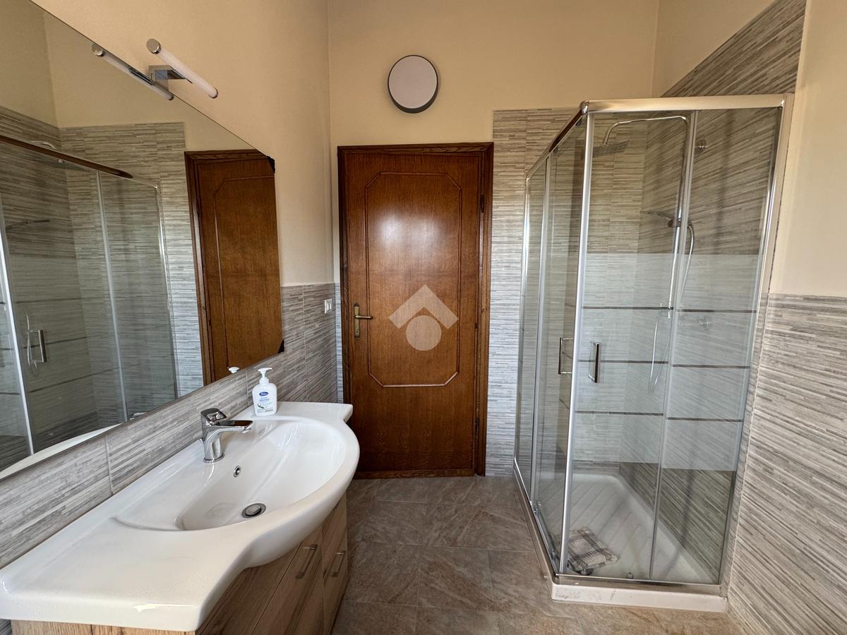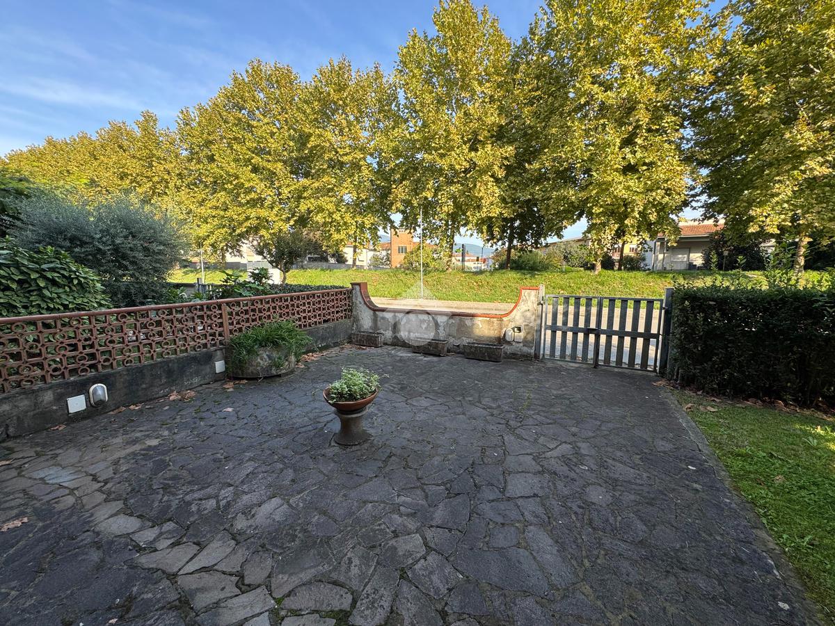 Rifinisce la soluzione il bagno dotato di box doccia e finestra e il giardino condominiale.
