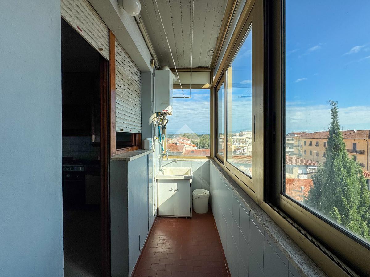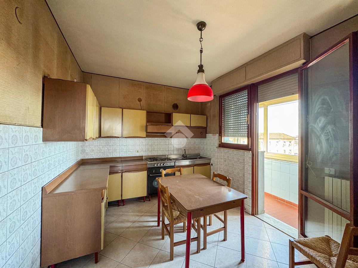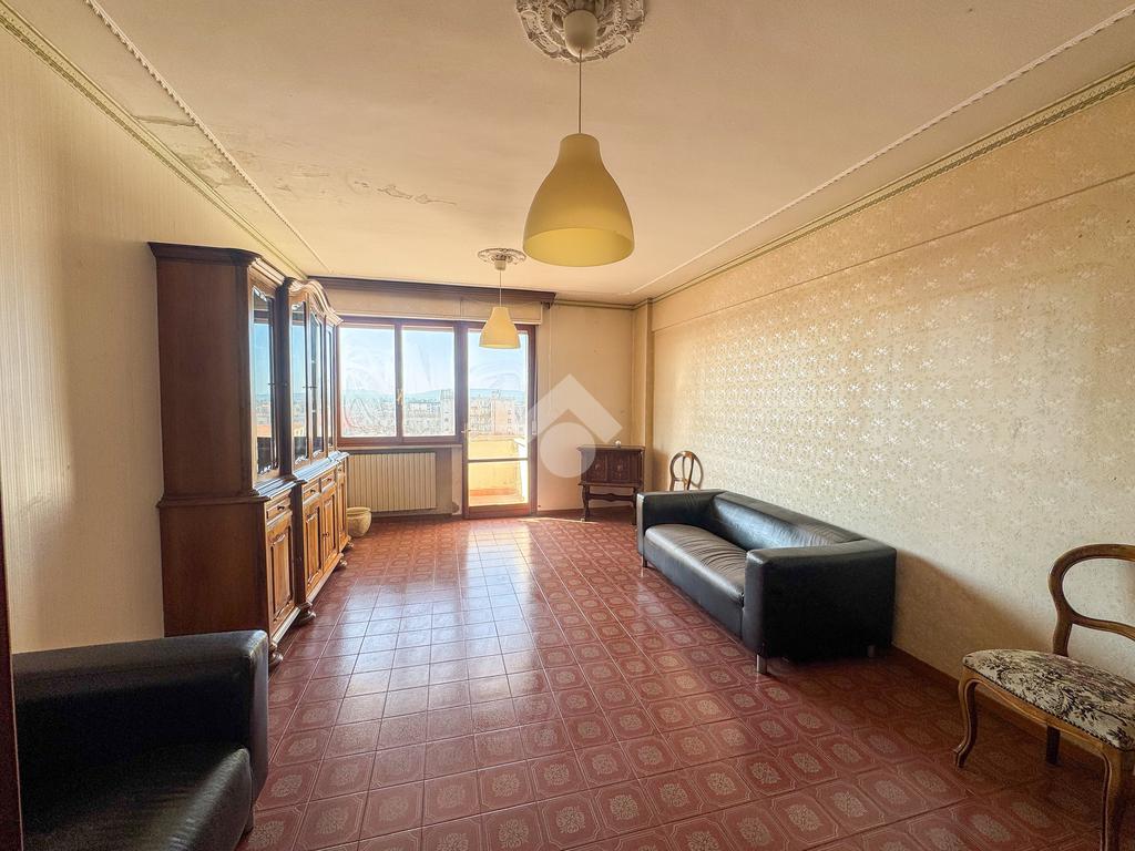 In zona residenziale comoda e ben collegata, vicinissima a tutti i principali servizi (scuole, supermercati, fermate autobus, negozi), proponiamo in vendita un ampio appartamento posto al quinto piano di un condominio servito da ascensore.