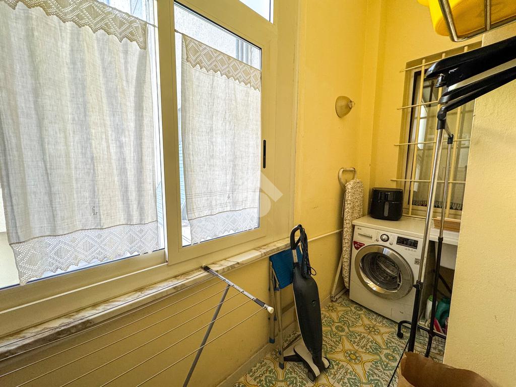 Dalla cucina si accede direttamente a un comodo balcone verandato, ideale come zona lavanderia.