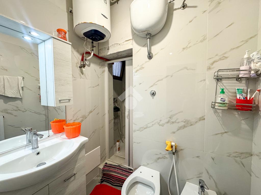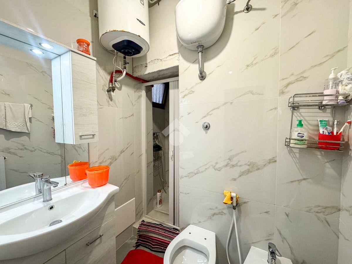Rifinisce la soluzione un comodo ripostiglio e il bagno completamente ristruttrato dotato di box doccia.