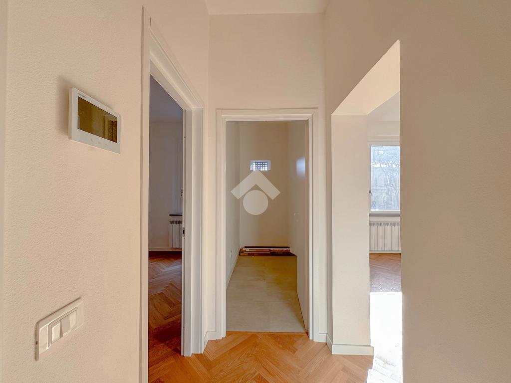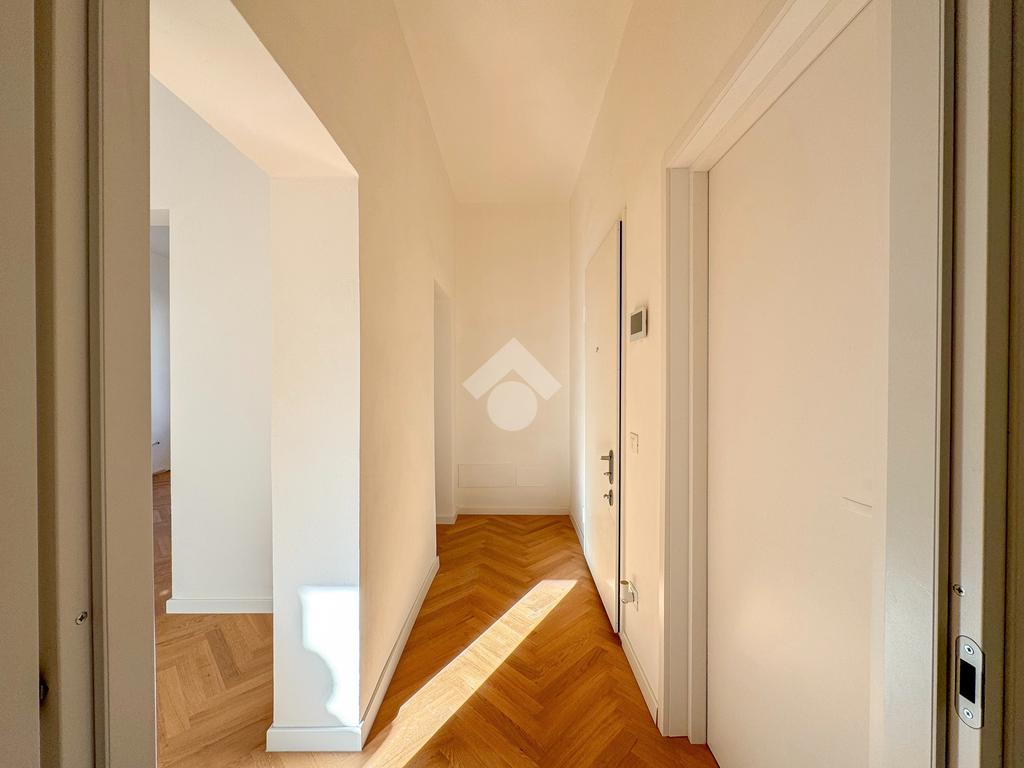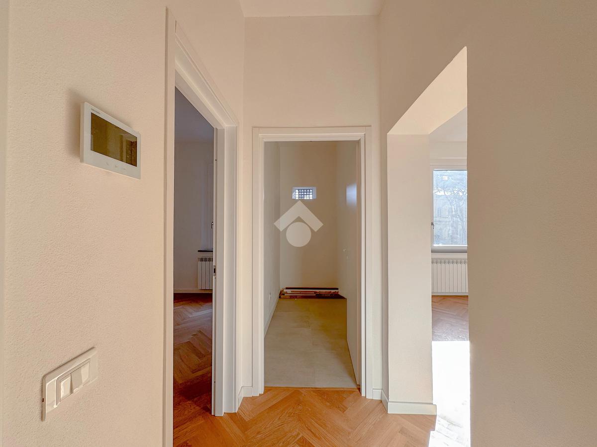 L’appartamento è stato ristrutturato integralmente con finiture di alto livello, tra cui pavimenti in parquet di rovere.