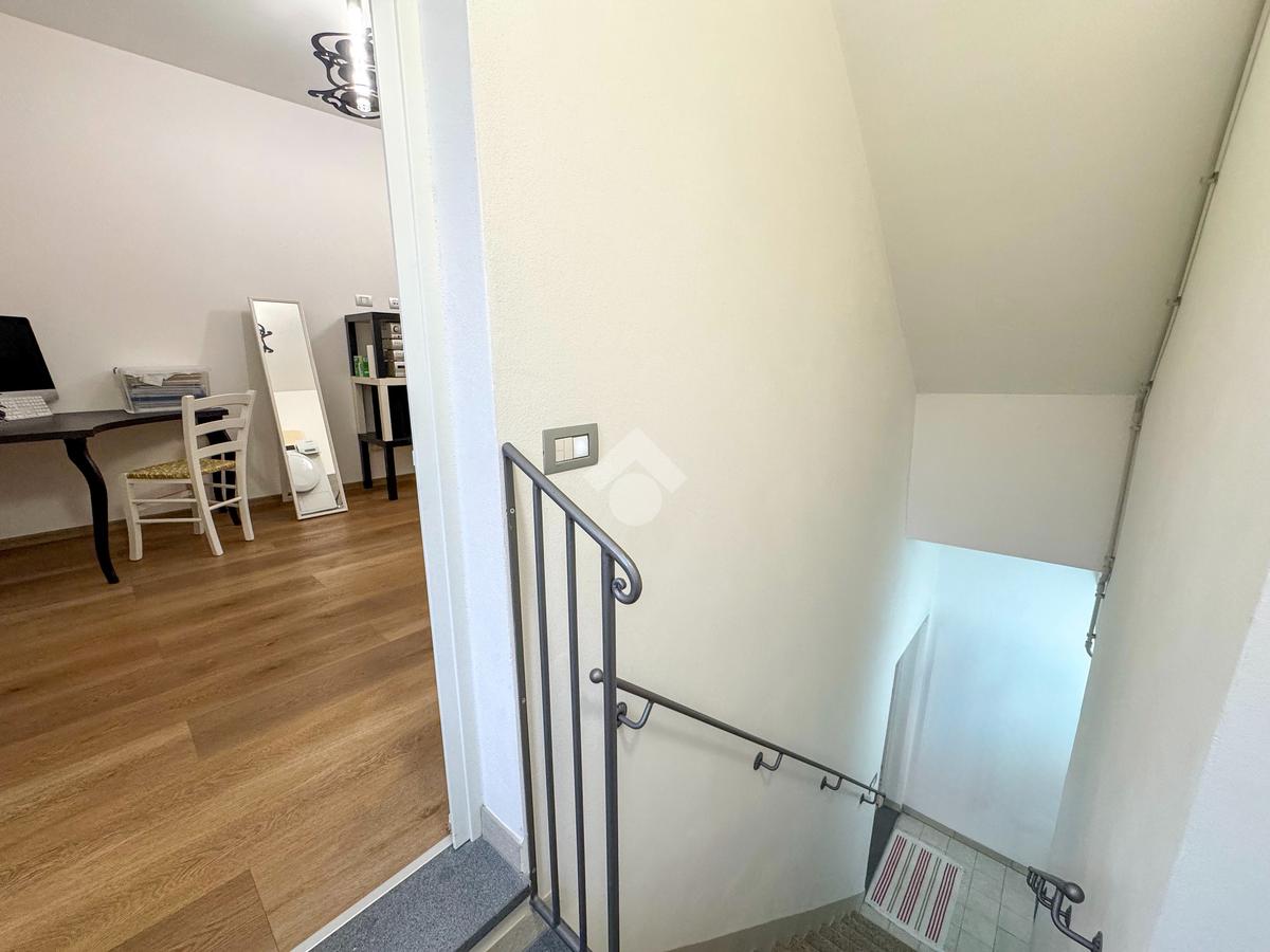 Al piano primo troviamo una cucina abitabile, funzionale e ben organizzata, con sottoscala ad uso lavanderia annesso. Completa il piano un accogliente soggiorno con ripostiglio e un bagno finestrato con box doccia. Salendo al piano superiore si accede alla zona notte, composta da due camere matrimoniali, ampie e luminose, oltre a un secondo bagno finestrato, anch’esso dotato di doccia. All’ultimo piano troviamo il vero valore aggiunto dell’abitazione: una terrazza abitabile comoda e unica, perfetta per momenti di relax, cene all’aperto o per godersi uno spazio esterno riservato in pieno centro. Inoltre, per chi desidera la massima comodità, vi è la possibilità di subentrare in un posto auto esclusivo in affitto, un vantaggio davvero prezioso in zona centrale.