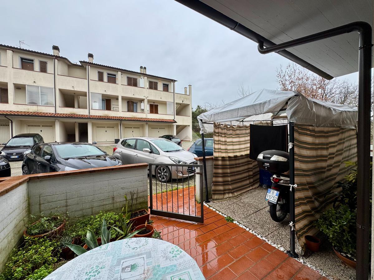 Proponiamo in vendita grazioso trilocale posto al piano terra con giardino.